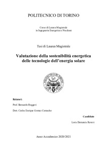 Valutazione della sostenibilità energetica delle tecnologie dell’energia solare = Evalutation of energy sustainability of solar energy technologies.
