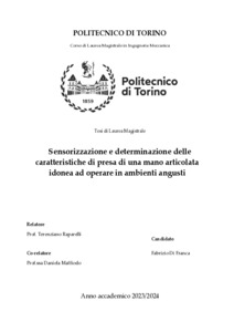 Sensorizzazione e determinazione delle caratteristiche di presa di una mano articolata idonea ad operare in ambienti angusti.