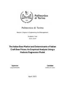 The Italian beer market and Determinants of Italian Craft Beer Prices: An Empirical Analysis Using a Hedonic Regression Model.