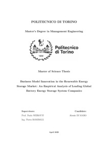 Business Model Innovation in the Renewable Energy Storage Market: An Empirical Analysis of Leading Global Battery Energy Storage System Companies.