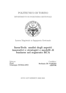 Insurtech: analisi degli aspetti innovativi e strategici e modelli di business nel segmento RCA = InsurTech: analysis of innovative and strategic aspects and business models in the Third Party Liability Insurance.