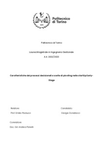 Caratteristiche dei processi decisionali e scelte di Pivoting nelle startUp Early-Stage = Features of Pivoting Decision Making and Choices in Early-Stage Startups.