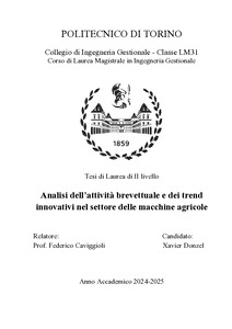Analisi dell'attività brevettuale e dei trend innovativi nel settore delle macchine agricole = Analysis of patent activity and innovation trends in the agricultural machinery sector.