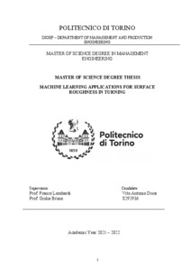 Machine Learning applications for Surface Roughness in Turning.