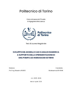 SVILUPPO DEL MODELLO CAD E ANALISI NUMERICA A SUPPORTO DELLA SPERIMENTAZIONE DI UNA POMPA AD INGRANAGGI ESTERNI = CAD MODEL DEVELOPMENT AND NUMERICAL ANALYSIS SUPPORTING THE EXPERIMENTAL TESTING OF AN EXTERNAL GEAR PUMP.