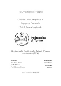 Gestione della fragilità nella Robotic Process Automation = Management of the fragility in the Robotic Process Automation (RPA).