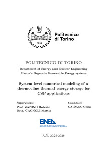 System level numerical modeling of a thermocline thermal energy storage for CSP applications.