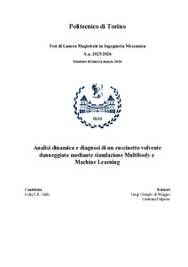 Analisi dinamica e diagnosi di un cuscinetto volvente danneggiato mediante simulazione Multibody e Machine Learning = Dynamic analysis and diagnosis of a damaged rolling bearing using Multibody simulation and Machine Learning.