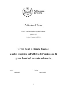 Green bond e climate finance: analisi empirica sull'effetto dell'emissione di green bond sul mercato azionario = Green bonds and climate finance: empirical analysis on the effect of green bond issuance on the stock market.