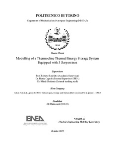 Modellazione di un sistema di accumulo di energia termica a termoclino con 3 serpentine = Modelling of a thermocline thermal energy storage system equipped with 3 serpentines.