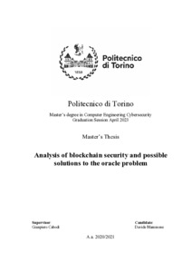 Analysis of blockchain security and possible solutions to the oracle problem.