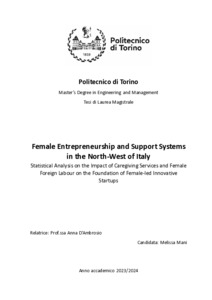 Female Entrepreneurship and Support Systems in the North-West of Italy: Statistical Analysis on the Impact of Caregiving Services and Female Foreign Labour on the Foundation of Female-led Innovative Startups.