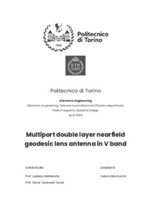 Multiport double layer nearfield geodesic lens antenna in V band.