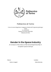 Gender in the Space industry. An analysis of the status of female entrepreneurship in European space startups.