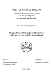 Stampa 3D di scaffolds polimerici bioderivati rinforzati con vetri bioattivi funzionalizzati = 3D printing of bio-based polymeric scaffolds reinforced with functionalized bioactive glasses.