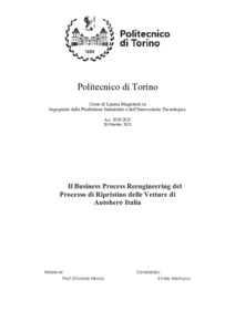 Il Business Process Re-engineering del Processo di Ripristino delle Vetture di Autohero Italia = The Business Process Re-engineering of Autohero's Car Refurbishment Process.