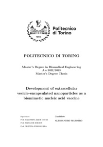Development of extracellular vesicle-encapsulated nanoparticles as a biomimetic nucleic acid vaccine.