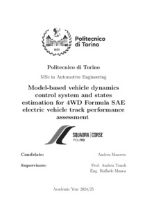 Model-based vehicle dynamics control system and states estimation for 4WD Formula SAE electric vehicle track performance assessment.
