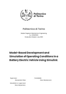 Model-Based Development and Simulation of Operating Conditions in a Battery Electric Vehicle Using Simulink.
