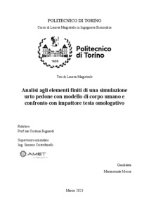 Analisi agli elementi finiti di una simulazione urto pedone con modello di corpo umano e confronto con impattore testa omologativo = Finite element analysis of a pedestrian crash simulation with a human body model and comparison with a validated adult headform impactor.