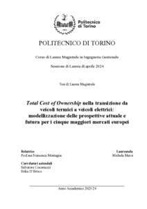 Total Cost of Ownership nella transizione da veicoli termici a veicoli elettrici: modellizzazione delle prospettive attuale e futura per i cinque maggiori mercati europei.