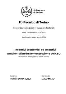 INCENTIVI ECONOMICI ED INCENTIVI AMBIENTALI NELLA REMUNERAZIONE DEL CEO. UN'ANALISI SULLE IMPRESE QUOTATE IN ITALIA. = ECONOMIC INCENTIVES AND ENVIRONMENTAL INCENTIVES IN CEO'S REMUNERATION. AN ANALYSIS ON LISTED COMPANIES IN ITALY.