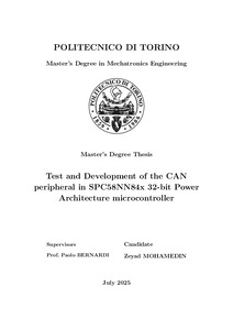Test and Development of the CAN peripheral in SPC58NN84x 32-bit Power Architecture microcontroller.