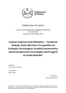 Carbon Capture and Utilization – Tendenze Globali, Stato dell'Arte e Prospettive di Sviluppo Tecnologico: Analisi Econometrica dell'Avanzamento Tecnologico dei Progetti su Scala Globale = Carbon Capture and Utilization – Global Trends, State of the Art and Technological Development Prospects: Econometric Analysis of the Technological Progress of Projects on a Global Scale.