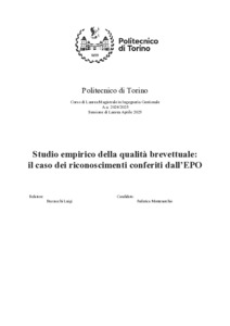 Studio empirico della qualità brevettuale: il caso dei riconoscimenti conferiti dall'EPO = Empirical study of patent quality: the case of awards conferred by the EPO.