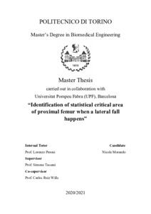 Identification of statistical critical area of proximal femur when a lateral fall happens.