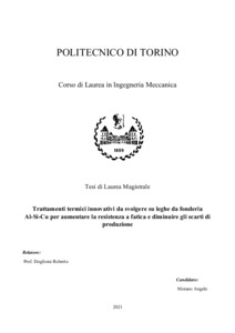 Trattamenti termici innovativi da svolgere su leghe da fonderia Al-Si-Cu per aumentare la resistenza a fatica e diminuire gli scarti di produzione = Innovative heat treatments to be carried out on Al-Si-Cu cast alloys to increase fatigue limit and reduce production waste.