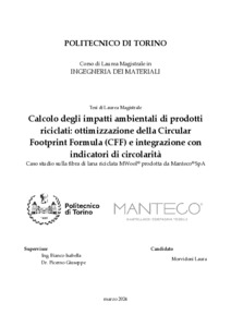 Calcolo degli impatti ambientali di prodotti riciclati: ottimizzazione della Circular Footprint Formula (CFF) e integrazione con indicatori di circolarità. Caso studio sulla fibra di lana riciclata MWool® prodotta da Manteco® SpA. = Environmental impact assessment of recycled products: optimization of the Circular Footprint Formula (CFF) and integration with circularity indicators. Case study on the recycled wool fiber MWool® produced by Manteco® SpA.