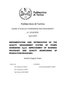 IMPLEMENTATION AND OPTIMIZATION OF THE QUALITY MANAGEMENT SYSTEM OF POMPE GARBARINO S.p.A: IMPROVEMENT OF BUSINESS PROCESSES AND QUALITY MONITORING OF PRODUCTION PROCESSES.