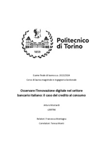 Osservare l'innovazione digitale nel settore bancario italiano: il caso del credito al consumo = Observing digital innovation in the Italian banking industry: the case of consumer credit.