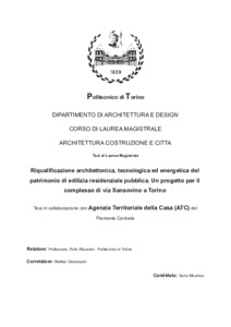 Riqualificazione architettonica, tecnologica ed energetica del patrimonio di edilizia residenziale pubblica. Un progetto per il complesso di via Sansovino a Torino = Architectural, technological and energy requalification of the public residential building heritage. A project proposal for Sansovino Street buildings, in Turin.