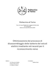 Ottimizzazione del processo di disassemblaggio delle batterie dei veicoli elettrici mediante reti neurali per il riconoscimento visivo = Optimization of the disassembly process of electric vehicle batteries through neural networks for visual recognition.