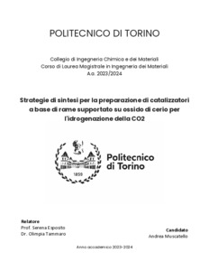 Strategie di sintesi per la preparazione di catalizzatori a base di rame supportato su ossido di cerio per l'idrogenazione della CO2 = Synthesis strategies for the preparation of copper catalysts supported on cerium oxide for CO2 hydrogenation.