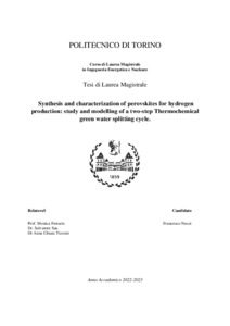 Synthesis and characterization of perovskites for hydrogen production: study and modelling of a two-step thermochemical green water splitting cycle.