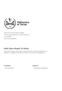 OHH: Zero Plastic To Drink. Come bere acqua riducendo l’inquinamento marino da plastica usa e getta: un approccio sistemico verso un consumo consapevole. = OHH: Zero Plastic To Drink. How to drink water while reducing marine pollution from disposable plastic: a systemic approach toward conscious consumption.