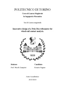 Innovative design of a Twin Disc tribometer for wheel-rail contact analysis.
