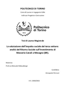 La valutazione dell’impatto sociale del terzo settore: analisi del Ritorno Sociale sull’Investimento di Masseria Canali a Mesagne (BR) = The evaluation of the social impact of the third sector: analysis of the Social Return on the investment of Masseria Canali in Mesagne (BR).