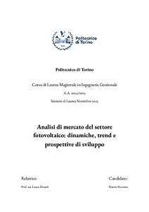Analisi di mercato del settore fotovoltaico: dinamiche, trend e prospettive di svilupp = Market Analysis of the Photovoltaic Sector: Dynamics, Trends and Development Prospects.