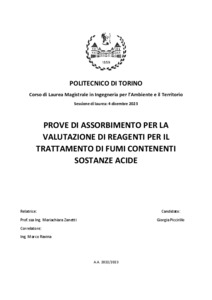 Prove di assorbimento per la valutazione di reagenti per il trattamento di fumi contenenti sostanze acide = Absorption tests for the evaluation of reagentsfor the treatmentof flue gases containing acidic substances.