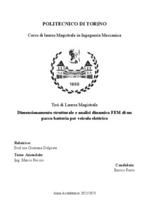 Dimensionamento strutturale e analisi dinamica FEM di un pacco batteria per veicolo elettrico = Structural design and FEM dynamic analysis of a battery pack for an electric vehicle.