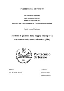 Modello di gestione della Supply Chain per la costruzione della vettura Battista (PF0) = Supply chain management model for the build of the Battista hypercar (PF0).