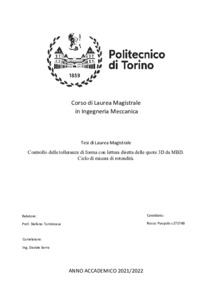 Controllo delle tolleranze di forma con lettura diretta delle quote 3D da MBD. Ciclo di misura di rotondità. = Form tolerances control with direct lecture of the 3D dimensions from MBD: Measurement cycle of roundness.