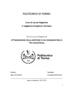 OTTIMIZZAZIONE DELLA GESTIONE DI UN COGENERATORE DI TIPO INDUSTRIALE = MANAGEMENT OPTIMIZATION OF AN INDUSTRIAL-TYPE COGENERATOR.