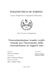 Neurostimolazione tramite realtà virtuale per l’incremento della concentrazione in soggetti sani = Virtual reality neurostimulation to increase concentration in healthy subjects.