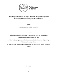 Esaminare l'impatto del cambiamento climatico sugli Appennini: un'analisi dei dati basata sul telerilevamento = Examining the impact of climate change in the Apennine Mountains: A Remote Sensing-based Data Analysis.
