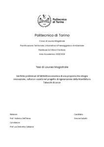 Verifiche preliminari di fattibilità economica di una proposta che integra innovazione, cultura e società nel progetto di rigenerazione della Manifattura Tabacchi di Lecce = Preliminary tests of economic feasibility of a proposal that integrates innovation, culture and society in the regeneration project of the Manufacture Tabacchi.